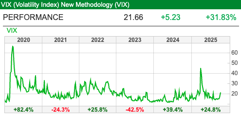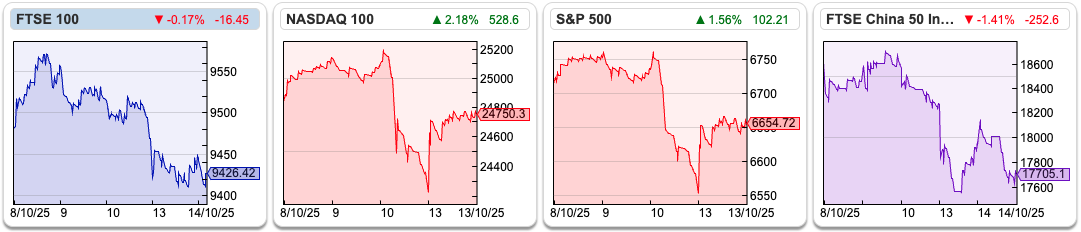 The FTSE 100 fell -0.65% to 9462 over the last 5 trading days. The Nasdaq100 and S&P500 were down -0.9% and -1.3%. There was a crypto sell off at the end of last week, with Doge down -20% and Bitcoin -8%. The VIX rose by a third to above 20. That’s its highest level in 6 months and compares to a peak of 45 at start of April when Trump announced his tariffs and 65 during the early stages of the pandemic.