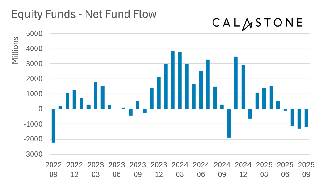 In addition, the chart below from Calastone, shows the exodus of funds from UK investors continued in Q3. So, we have avoided the wave of speculative excess going on the other side of the Atlantic, which makes me sanguine about the outlook for UK investors.