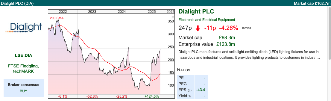This industrial LED lighting company says that sales in H1 will be marginally down on H1 last year ($90m) due to tariff uncertainty. Following the cautious sounding guidance, management then go on to say in the second paragraph that their Transformation Plan is going well and they now expect to “significantly exceed the market expectation for Adjusted Operating Profit for the year ending 31 March 2026.” Net debt has fallen from $18m over the last six months to $10m at the end of September, helped by a couple of Covid related tax credits (but not included in the FY Mar 2026F guidance above).