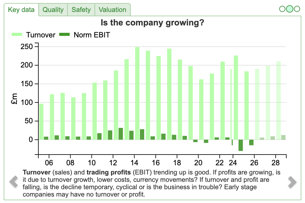 History: The shares have been listed on AIM since the mid-1990s, and the share price was above £10 per share in 2017. Then the company started reporting “short-term production challenges”, those “short-term” challenges resulted in the share price falling -90% over the next 7-8 years, to trough at 94p at the start of this year.