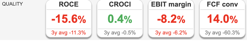 ShareScope’s quality indicators show that historic performance has been poor, management claim they are a “world leader” in industrial LEDs, yet this hasn’t resulted in “world leading” returns.