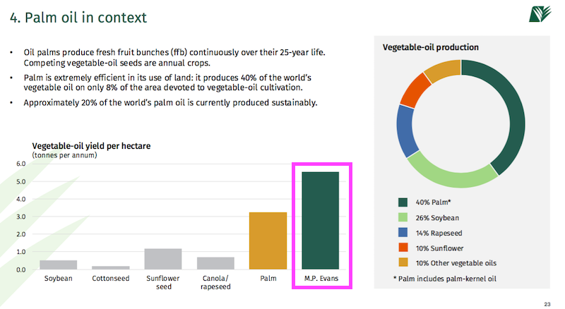 A particular financial attraction to palm oil is its greater ‘yield per hectare’:
