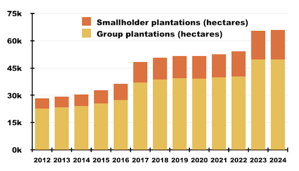 …which has allowed the volume of crop harvested from the group’s own plantations (and those of associated smallholders) to more than double as well:
