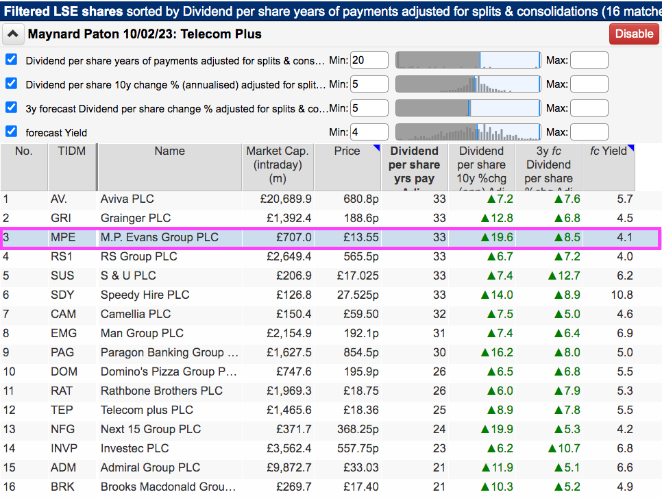 (You can run this screen for yourself by selecting the “Maynard Paton 10/02/23: Telecom Plus” filter within ShareScope’s magnificent Filter Library. My instructions show you how.)