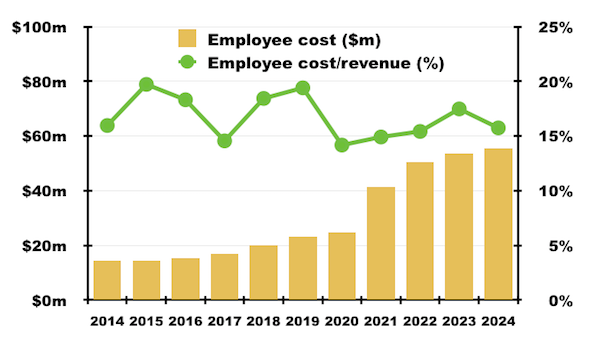 But helping matters are MP’s employee costs, which typically absorb only 17% of revenue: