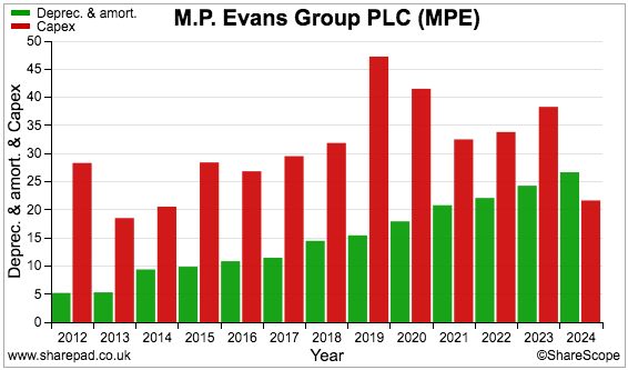 Note that cash capital expenditure has typically exceeded the depreciation charge by some distance as new land has been acquired, new facilities have been constructed and new plantations have been seeded: