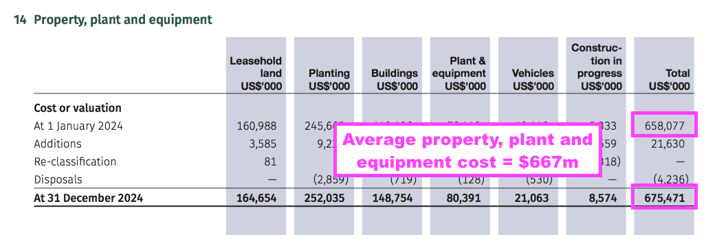 But the hefty capex seems to have paid off. For example, the 2024 accounts showed the average historic cost of all property, plant and equipment to be $667 million…
