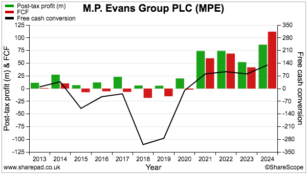 The bumper cash conversion since 2021 explains why the dividend then surged from 22p to 52.5p per share!