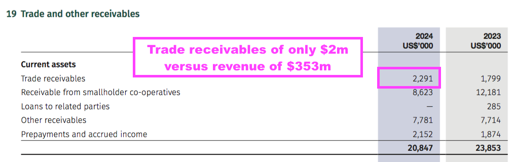Trade receivables at the end of 2024 were therefore a minuscule $2m versus revenue of $353 million: