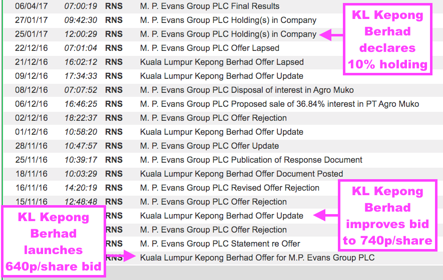 KL Kepong Berhad failed to acquire MP for 740p per share during a 2016 bid approach: