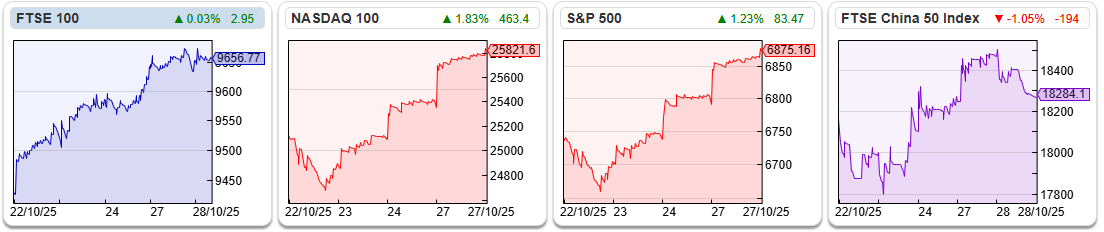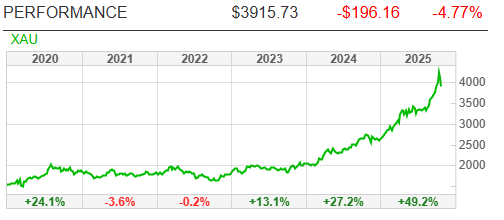 The FTSE 100 was rose +2.4% over the last trading days to 9,656. The Nasdaq100 and S&P500 were up +2.7% and +2.1% respectively. The CSI 300 Index (Shanghai) was up even more strongly +3.9% as Donald Trump seems to be walking back his previous tariff threats. Gold had a wobble, with XAU (the spot price) down -10% over the last 5 trading days to $3,916. Sharescope also has G$, which is the London Bullion Market (LBM) fix, which remains above $4,100 an ounce at the time of writing. G$ sees lower volume than the spot price and is likely to lag XAU.
