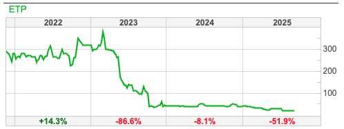 More generally, the 2021 experience suggests that it is worth tracking which management teams announce inline results, but ask brokers to cut numbers. Another example from 2023 springs to mind: Eneraqua announced a “significantly ahead” outlook statement, while the share price crashed -50% as PBT margin guidance was reduced. Fast-forward two years ETP shares have de-listed, as the chart shows below. At the very least, management who play this game of “upbeat RNS, broker downgrades” feel uncomfortable communicating directly with shareholders about deteriorating future expectations. That, in turn, can be a revealing “red flag” as the later share price performance of D4T4/Celebrus and ETP shows.