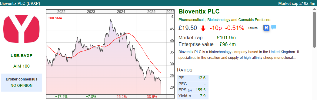 This medical diagnostics group which specialises in sheep monoclonal antibody which are used in blood tests (In Vitro Diagnostics or IVD), was a former multi-bagger. The shares rose from below £2 a share 15 years ago, to peak at over £50 per share in early 2024, but have now come off -60%. Worth noting that Peter Harrison, Chief Executive sold £2.6m worth of shares in January 2024 “to enable a new institutional investor to join the share register.” There’s nothing wrong with this, Sharescope shows he still owns 5.79%. Just a “note to self” to keep track of director selling, particularly when shares have been strong performers and there are no obvious signs of deterioration.