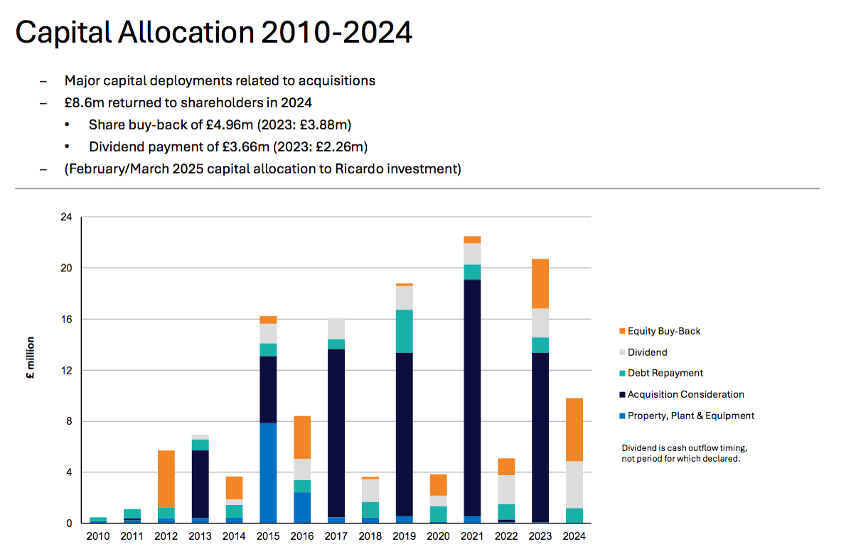 The ‘capital allocation’ slide below tells me Science operates very differently to most UK small caps:
