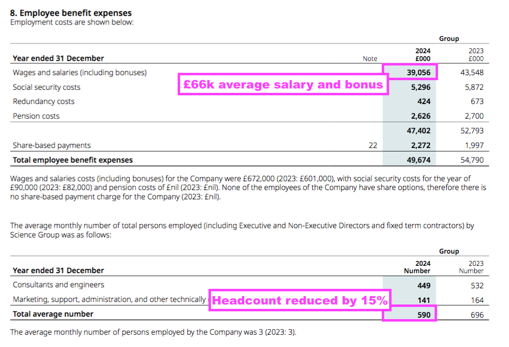 I note Science’s total workforce — which includes fixed-term contractors — was reduced by a hefty 15% during 2024: