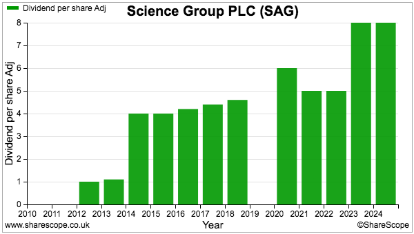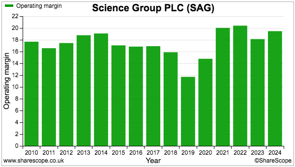 ShareScope shows Science’s ROE surpassing a very useful 18% during the last five years: