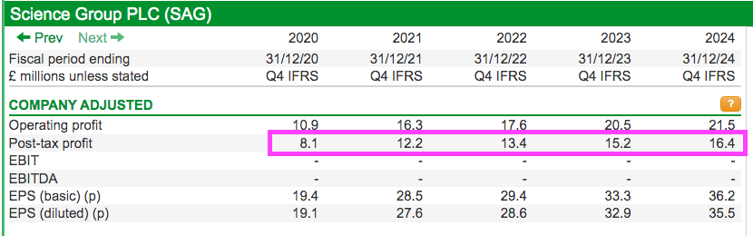 (The hefty profit-growth projections for 2025 are due to ShareScope comparing Science’s unadjusted 2024 numbers to the City’s adjusted 2025 estimates.)