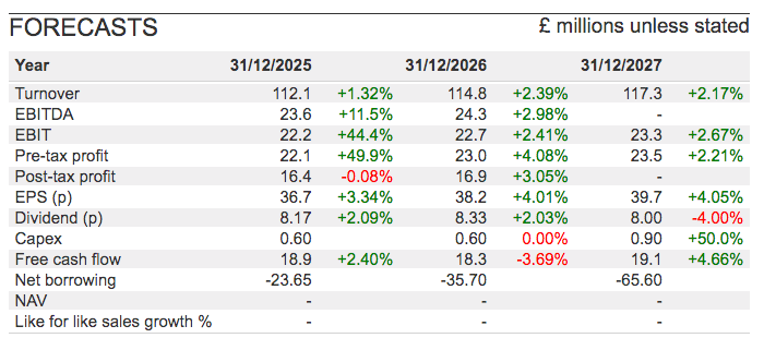 The revenue and profit growth forecasts for 2026 and 2027 are very modest, emphasising that further acquisitions will indeed be required to replicate the past rate of expansion.