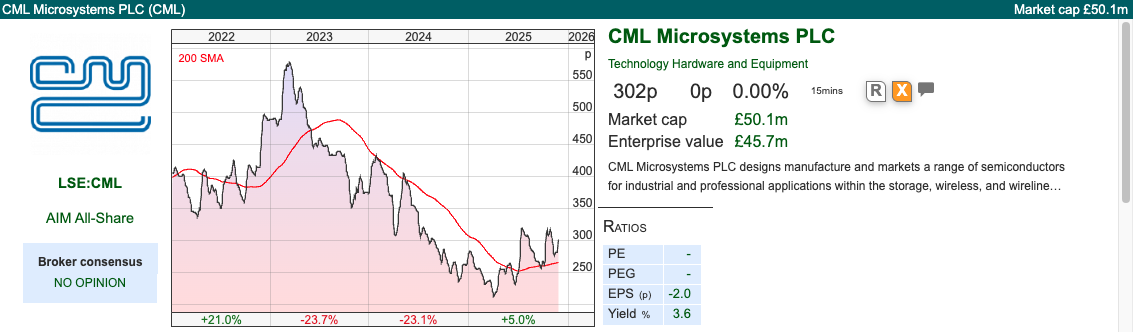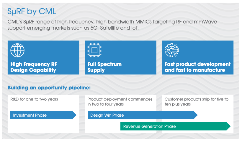 Also this July, management announced a $30m contract win to be delivered over 12 years. The contract was with a Global Navigation Satellite System (GNSS) equipment manufacturer. Shore Capital has published a detailed 27 page research note, available for free on Research Tree, saying that satellite communications (or satcom) represent a high-growth opportunity for CML’s SμRF products. CML’s “specialised compound semiconductor components – such as high-performance power amplifiers, low noise amplifiers and RF front-end modules – are critical components for reliable, high-frequency signal transmission and reception in satellite communications. The products are designed to meet the stringent requirements of satellite systems, including high linearity, efficiency and durability in harsh environments, helping satellite operators deliver robust connectivity across wide coverage areas.”