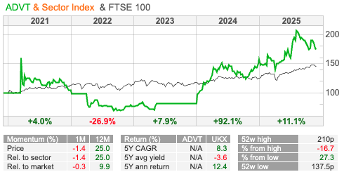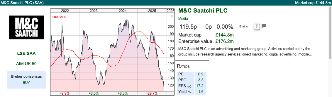 Remember that in 2022 there was a bidding war between Vin Muria’s AdvancedADVT cash vehicle and NextFifteen, which both thought M&C Saatchi was worth around £2 per share. But both offers lapsed, as not enough shareholders voted in favour. Since then SAA has halved in value, and NFG is down -80%, while S4 Capital has fallen -95%. Vin Muria must be thanking her lucky stars, as ADVT has been acquiring smaller SaaS companies and digital transformation platforms and ADVT shares have doubled in value.