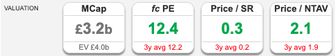 Outlook: FY Mar 2026F outlook unchanged, though with a H2 weighting. They expect underlying operating PBT at “the higher end of mid single digits” (presumably 6 to 8%). Medium term targets are for mid single digit CAGR in operating profits, with a focus on sustainable free cashflow of at least £250m FY Mar 2028F and cash returns to shareholders of at least £200m.