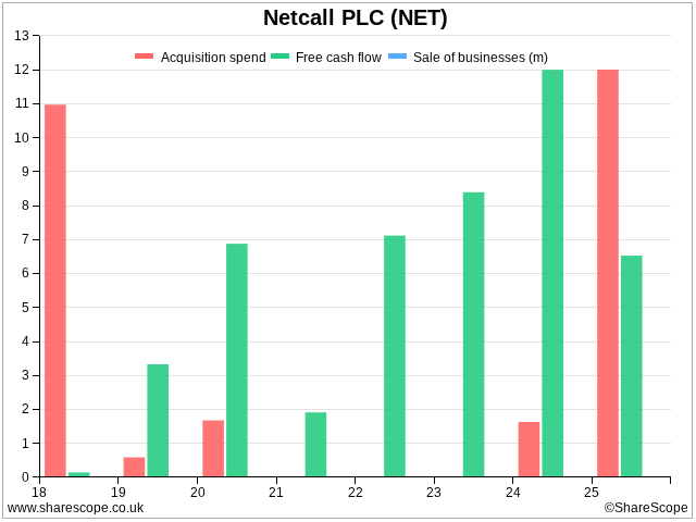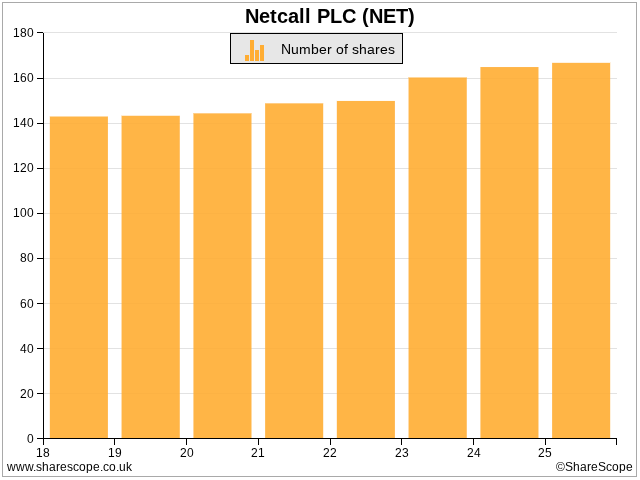 The acquisition also partly explains the bump in the share count in 2023, the single strike I gave Netcall.