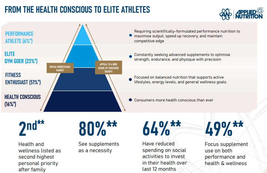 History: Applied Nutrition was founded in 2014 by Thomas Ryder. The group’s first product was a premium all-in-one nutritional supplement designed for athletes seeking to maximise muscle mass. JD Sports bought just under a third of the company from him in 2021. The UK is the largest market, but they are seeking to expand internationally with a European distributor, plus Asia, the Middle East and US expansion are mentioned in the prospectus.