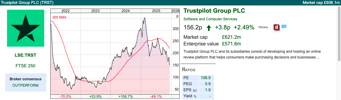 Opinion: I love a good turnaround situation, with a founder returning to a business that’s lost its way. So, with Stephan Shakespeare returning to YOU in February this year, I am warmer to the YOU investment case than TRST, particularly given the valuation. My working hypothesis is that in a world of “bot farms” generating fake content, verified human data becomes a scarce asset, therefore more valuable. Having said that, neither TRST or YOU look like “trending value”, so I will avoid for now.
