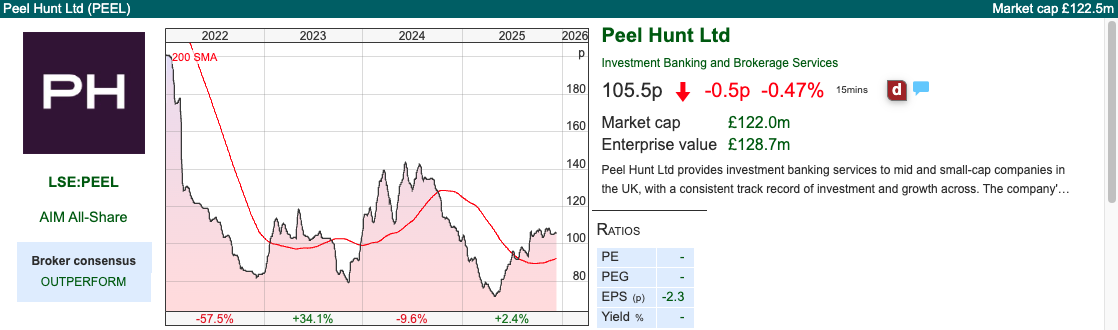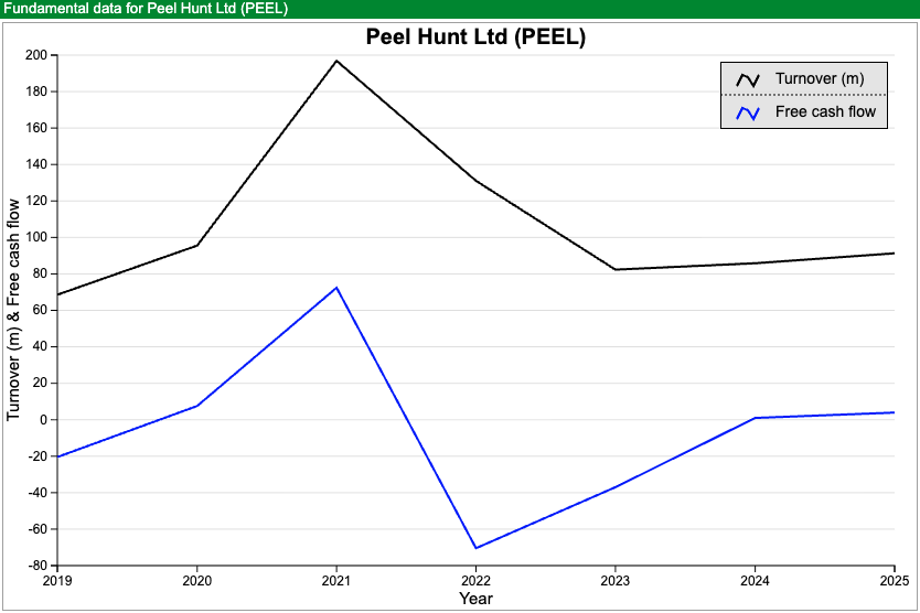 I covered stockbroker Cavendish in October last year, suggesting that the investment case might make sense if you were upbeat about the prospects of AIM over the following 12 months. Now, at the end of 2025 perhaps timing is more fortuitous? In any case, PEEL reported H1 Sept revenues +38% to £74m and PBT up 10x to £11.5m. They had cash of £13.6m on their balance sheet, which they’ve included as a bullet point on the first page, but I can see on the face of the balance sheet there’s a £6m “long term” loan listed in current liabilities, so presumably that needs to be repaid and net cash was £7m at the end of September. I dislike management teams that draw attention to cash in their financial highlights, without mentioning any offsetting debt. It’s like a friend boasting about how wealthy their BTL property portfolio has made them, while ignoring the amount of borrowing they’ve taken on.