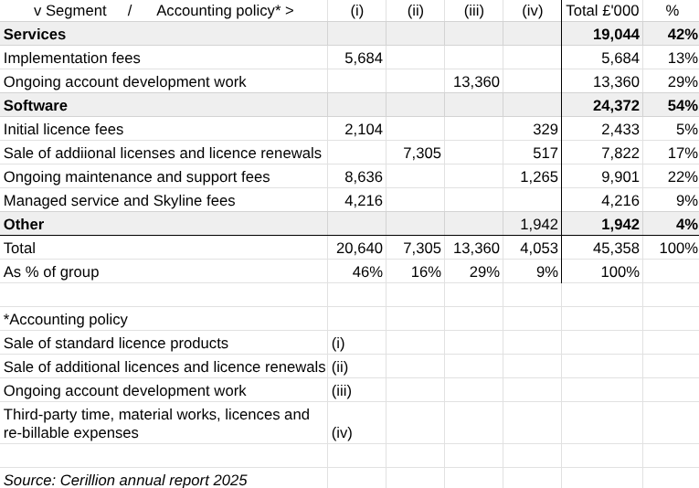 Source: Cerillion annual report 2025. Standard licensed product sales are “complex”.