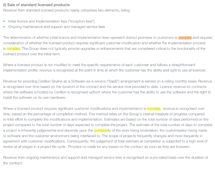It has also reminded me that accounting at software companies is complex. Cerillion says as much in the notes to its accounts: