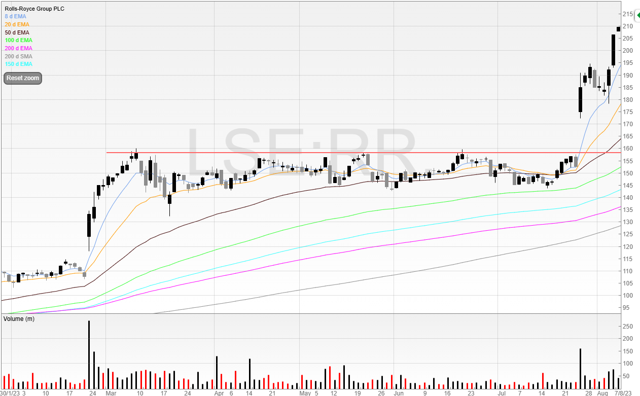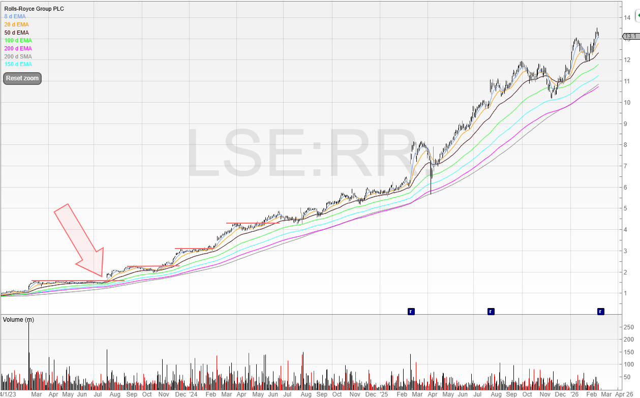 Rolls-Royce (RR.) broke out of a tight base on an unexpected earnings beat.