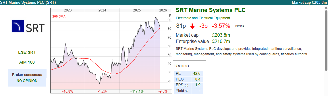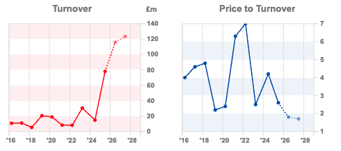 Their Maritime Domain Awareness (MDA) technology helps sovereign agencies such as Coast Guards and Fishery Authorities to track activity for maritime safety and security. Their navigation safety systems enable vessel operators to navigate more safely and efficiently. I don’t think they’ve said anything publicly, but I would imagine the rise of Russia’s shadow uninsured tanker fleet has been a commercial tailwind. So, you won’t find a button on their website saying “press here to track Russian tankers”, but SRT’s core business is selling the “eyes and ears” that governments use for that purpose. As the shadow fleet becomes more sophisticated at hiding, the demand for SRT’s high-end surveillance systems help “unmask” the dark fleet. Revenue is forecast to grow to £116m FY Jun 2026F, compared to £8.2m FY Mar 2022 – that’s an increase of 14x in 4 years.