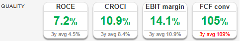 For comparison, Tristel the chorine dioxide medical device disinfectant group which also reported on Monday, has a gross margin above 80%, but reports ROCE above 20%, with an EBIT margin of 22%.