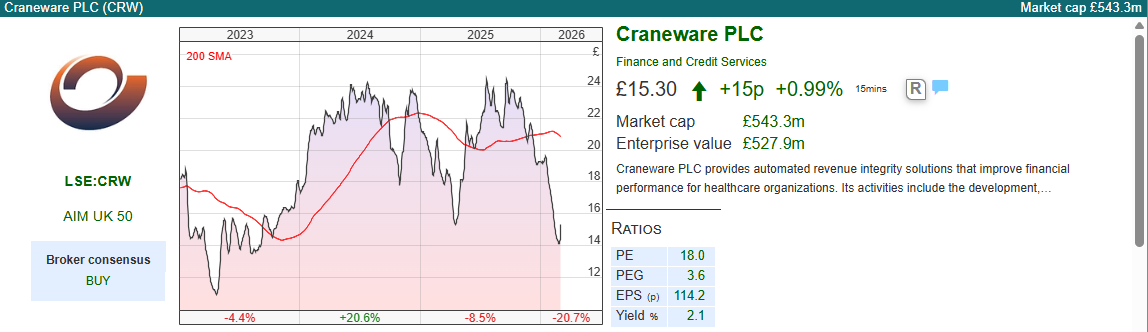 I think Craneware (and SRT Marine for that matter) make an interesting case study on what AI Agents might not be able to disrupt. Clearly investors are sceptical at the moment of groups like LSEG, RELX and even RMV, but Craneware does seem to have a genuine “moat”. I don’t own any, but think the investment case looks reasonable.