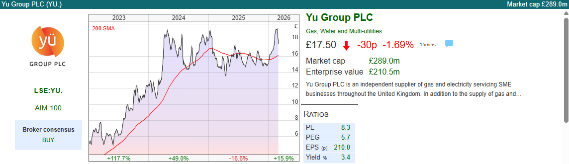 Yü Group helps businesses “shop around” and manage their energy contracts. There were some similarities with the business model of Utilitywise, which failed after some investors questioned the accounting policies (recognising revenue upfront for multi-year contracts). Both groups were trying to disrupt the B2B energy buying process. Understandably, investors had beaten down the valuation of Yü Group.