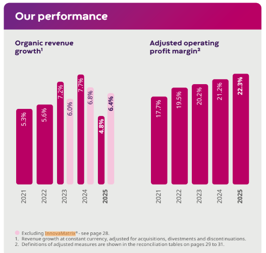 Like 4Imprint, Bunzl contracted slightly in the year to December 2025. It too has experienced headwinds, self inflicted, and due to tariffs and uncertainty in North America where it earned a slim majority of turnover.