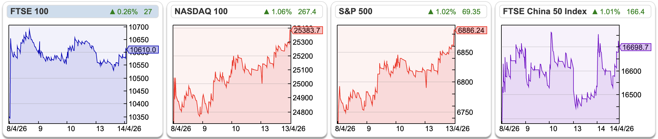 The FTSE 100 rose +2.3% to 10,610 over the last 5 trading days. The Nasdaq100 and S&P500 were up even more strongly, +5.0% and +4.2% respectively. The Vix has fallen below 20. So there’s been a “risk on” rally, without the Straits of Hormuz re-opening. I remain cautious for now, trying to sell my more illiquid, underperforming positions to raise cash to reinvest in the summer/autumn.