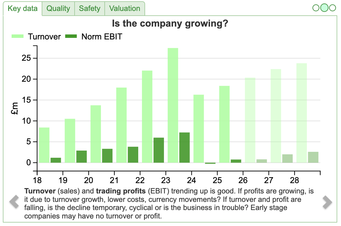 That was a useful red flag. To be clear, window dressing the financial numbers for the IPO didn’t cause the 2023 profit warning, as customers took a more cautious approach to capex decisions. Instead Maynard’s article highlighted poor voluntary disclosure choices by management that were an early indicator that the investment case had been somewhat finessed for public markets. The situation now seems to have improved, with Calnex’s reporting a “slightly ahead” RNS for FY Mar 2026F, +19% revenue growth to £22m and improved profitability. Net cash is £9m.