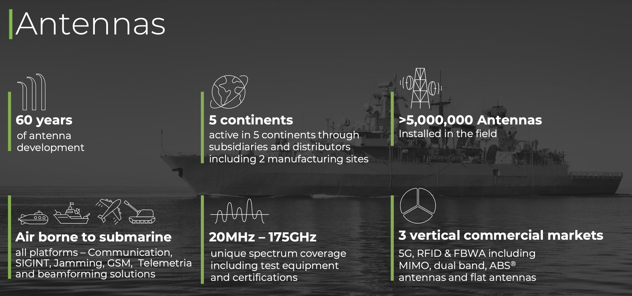 Looking back the FY Dec results, which cam out a month ago, the Antenna’s division is just under a third of group revenue. It was growing at +11% per year, but military antennas was growing at +50%, and represented around half (so 15% of group) of the division. The other divisions are Water Control & Management, just over a third of revenue, which manages water irrigation for agriculture and was growing at +10%. The third division is Distribution & Professional Consulting Services, which contains MTI Summit and PSK brands, also selling into the defence sector, around 80% of revenue (a quarter of group revenue).
