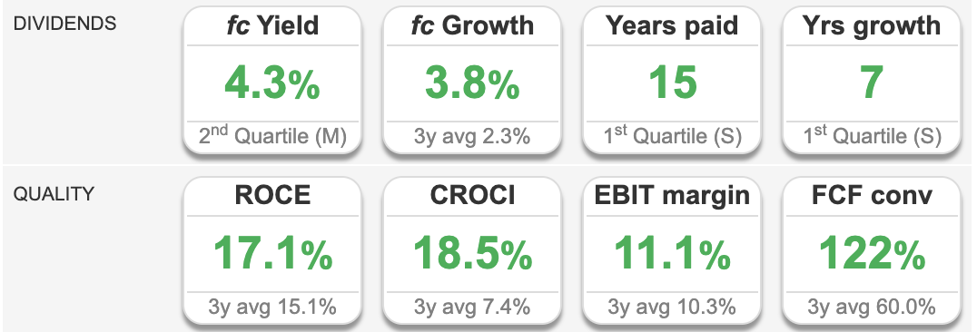Valuation: The shares are trading on 15x Dec 2026F, dropping to 14x the following year. The EV/EBITDA is 9x 2026F. ShareScope’s quality indicators are positive.