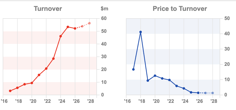 Now the FY Dec 2025 results show revenue growth has stalled: -2% to $52m, and adj EBITDA +7% to $16m. Naturally, no sign of statutory profits on the front page (the p&l shows that losses before tax were $7m), and cashflow from operating activities more than halved from ($19m to $8m). Amply demonstrating why investors should be sceptical of any management team who wish to emphasise adj EBITDA.