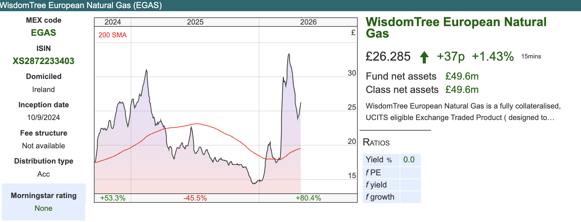Brent Crude (BR$SP) has risen to $104 per barrel and is now up +47% since 26th February, when hostilities began in Iran. Natural Gas prices have been diverging between the USA and Europe, so I am now following EGAS (Wisdom Tree European Natural Gas Exchange Traded Commodity) +43% since 26th February.