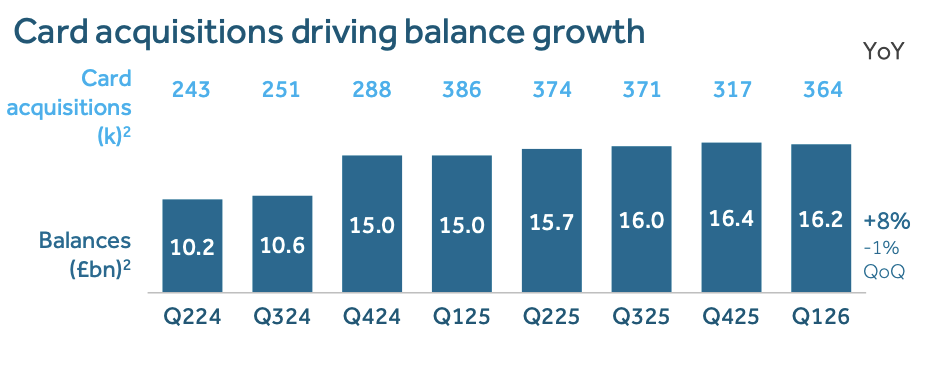 Bear in mind that credit card borrowing is currently growing at +12% in the UK, around 4x the rate of UK mortgage growth. Barclaycard UK, with £16bn of card balances, is the largest credit card company in the UK. Management seem to have taken a step back in Q1 with balances down -1%, perhaps taking their foot off the accelerator as they fear credit quality deterioration in the second half. Barclaycard reveals that in Q1 this year their 30 and 90 day arrears rates are beginning to rise to 0.9% (Q125: 0.7%) and 0.3% (Q125: 0.2%) from a low level.