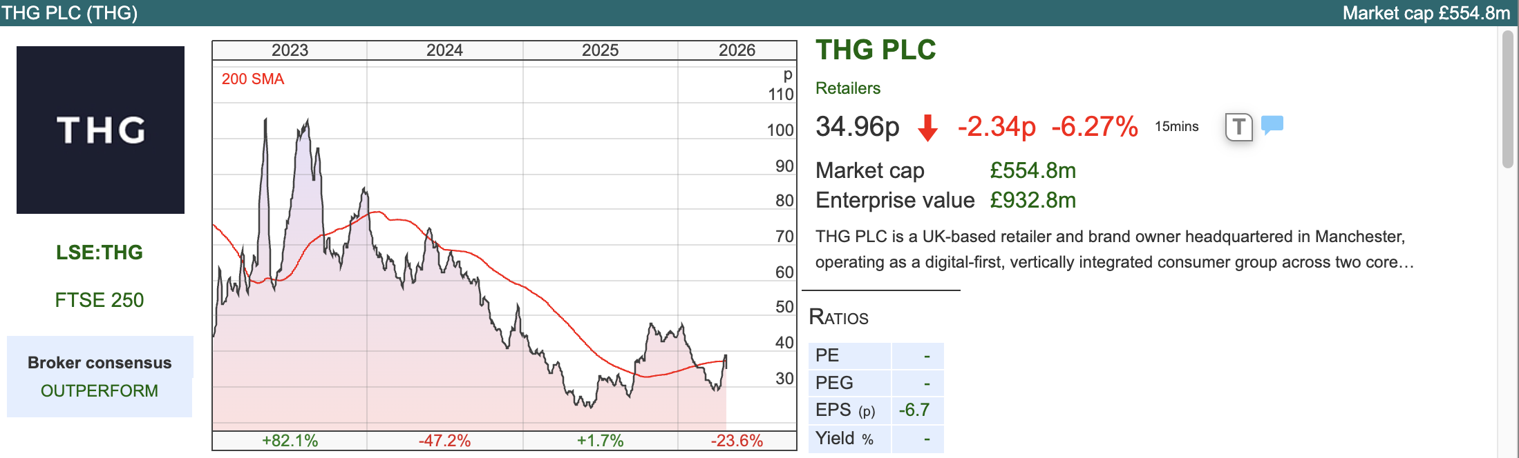 This Manchester headquartered online beauty and nutrition brand was (yet another) 2020 IPO at an over inflated price, subsequently collapsing -95%. Similar to Callnex, which I wrote about earlier this month, I think the chart now may have bottomed, and investors could do worse than fishing in the pool of pandemic era IPO’s that have disappointed, but now stabilised. I wonder why professional fund managers ever backed these investments at the wrong price though; seems like a good argument for using Sharescope to do your own investing.