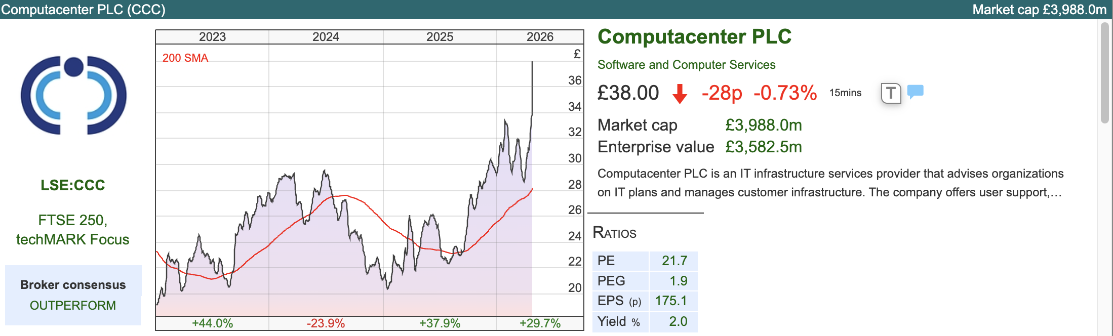 Opinion: The investment case he rests on how long you think the current trend of datacenter buildout is going to last. I’m cautious about H2 generally. Hostilities in the Gulf are taking time to have an effect by we could see higher food prices, corporate capex may also be reduced as we face re-financing of all the corporate bonds issued at much lower rates. Computacenter’s revenue did fall -7% during the pandemic, so I don’t think we should extrapolate recent strong performance too far into the future.